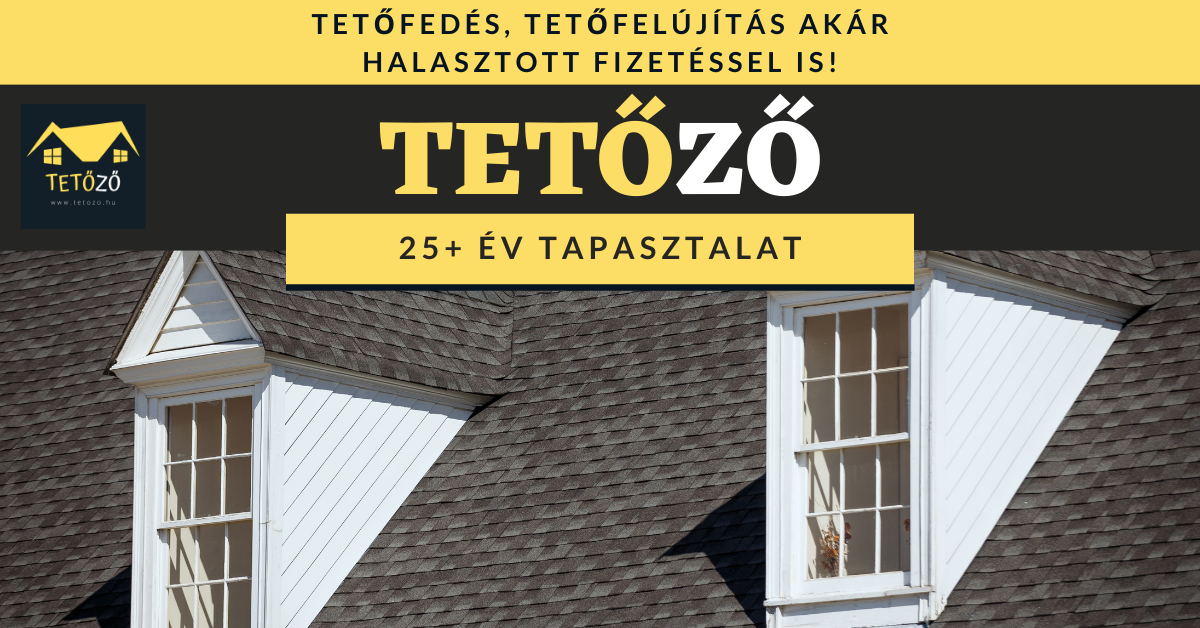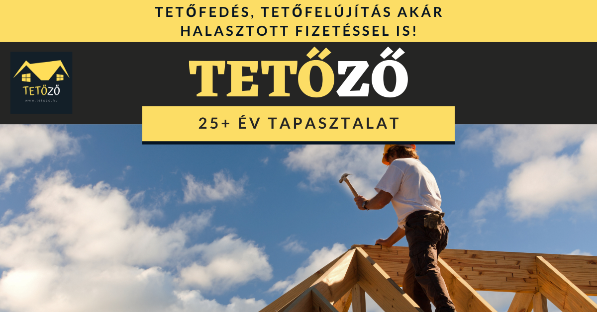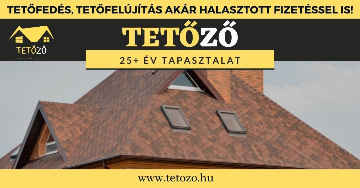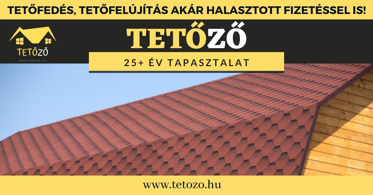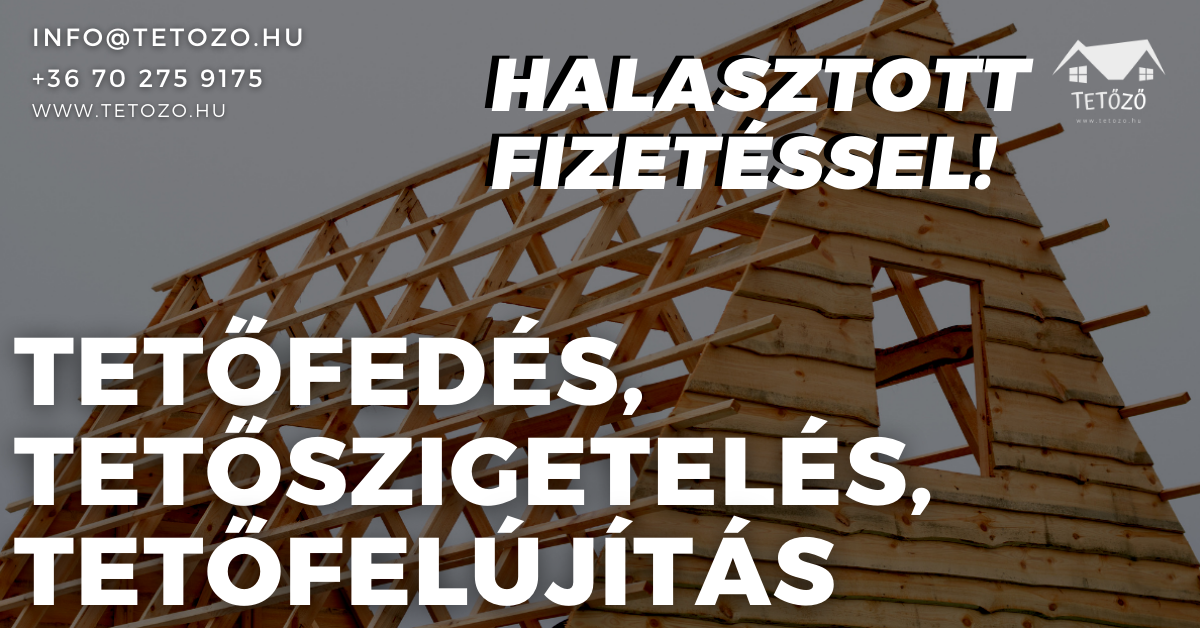 Tetőfedés, tetőszigetelés és tetőfelújítás akár halasztott fizetési megoldással is. A halasztott fizetési megoldásnál nem banki részletfizetésről beszélünk. A tetőző vállalkozás immár 30 éves múlttal és 3500+ sikeresen átadott tetővel tudja biztosítani megrendelőinek a szakmai tapasztalatot. tetőfedést, tetőszigetelést és tetőfelújítást az egész országban, több munkabrigáddal vállalunk. Tetőfelújítást akár bontás nélkül is végzünk. Tetőfedő szakembereink gyorsan, tisztán dolgoznak. Szolgáltatásaink iránt kérjük érdeklődjön a tetőző ügyfélszolgálatánál. Ne halassza el a lehetőséget! Új tető lehet feje felett halasztott fizetési megoldásunkkal. Tisztelettel: Tetőző csapata